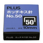 | 小型ホッチキス用●10号針●針サイズ:幅8.4mm×高5mm●太さ:0.424mm●とじ枚数:〜20枚●1箱入数:1000本(50本とじ×20)×20個. |